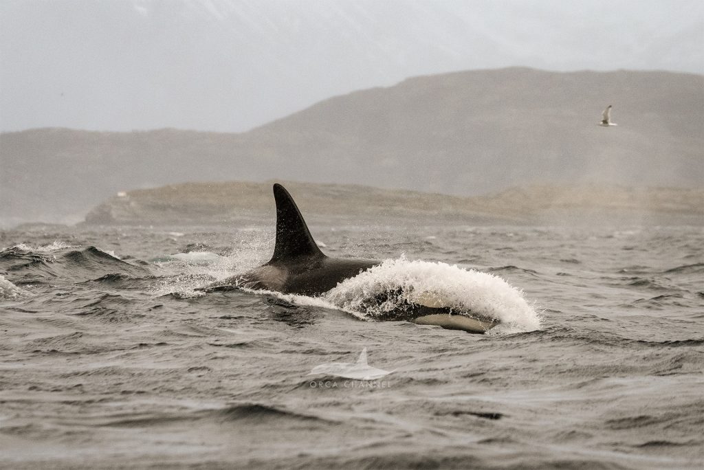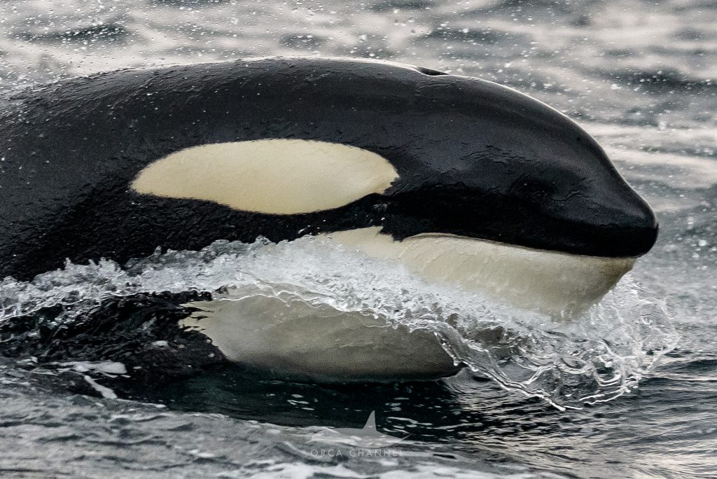 In the area where we found the orcas, the water was a bit wavy, so the orcas had to lift their head higher above the surface to be able to breathe, an excellent opportunity for us to see their face.